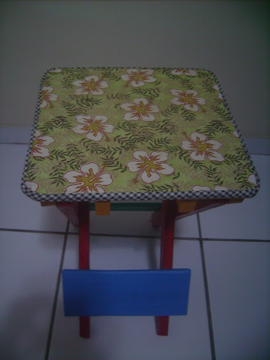 Aquele bom, velho e baratinho banquinho de madeira lá do Mercado São José totalmente customizado.