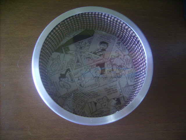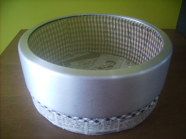 A transparência permite a visualização do revestimento interno feito com retalho de tecido e recortes de jornal velho: