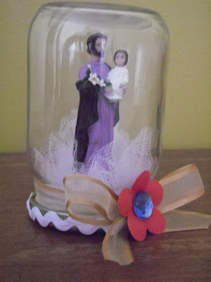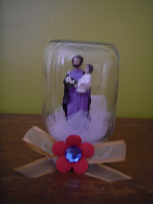 Decoração feita com retalho de tule, fita, sianinha, flor de tecido e miçanga: