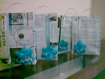 Embaladas para presente em sacolinhas de jornal.