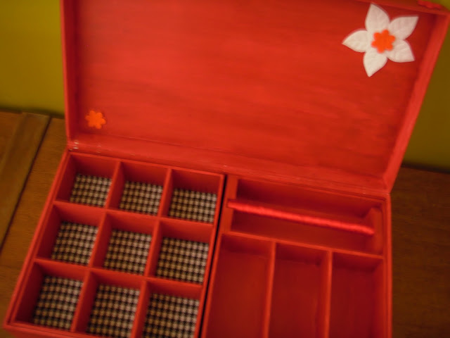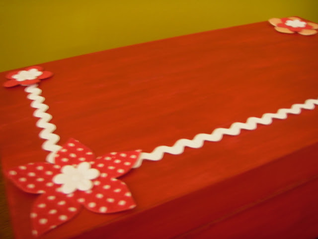 Caixa para jóias em mdf decorada com flores, fitas e sianinhas: